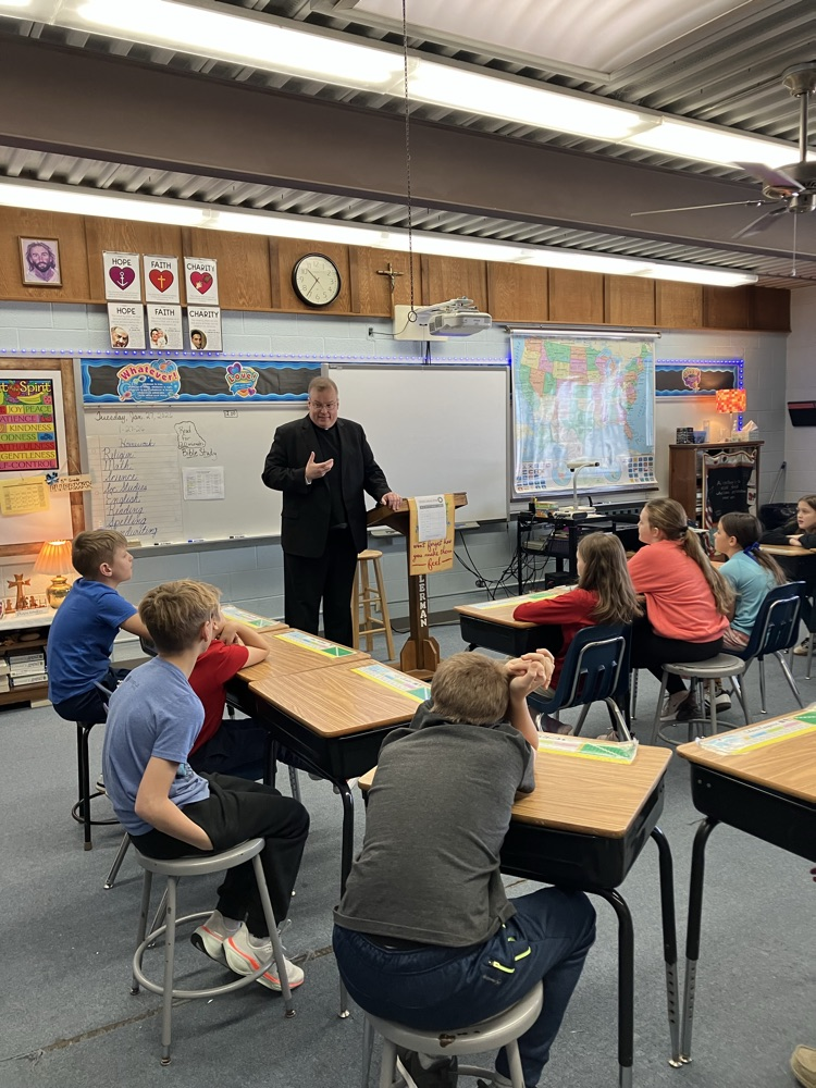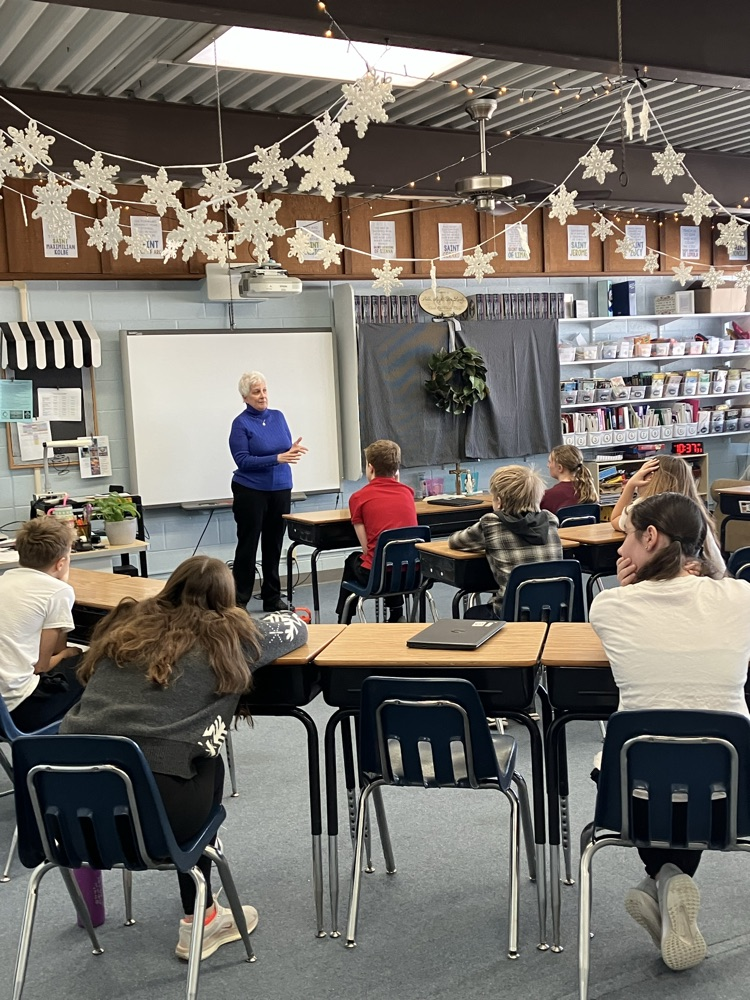 4th grade is learning about the Community Foundation and helping them make thank you cards this morning for our service to the community with Catholic Schools Week.